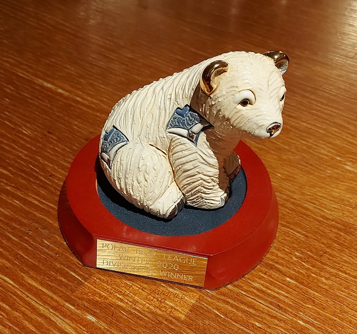 - Also received a special prize from the Polar Bear League for all his assistance with their results spreadsheet. They offered payment but he refused. So they sent him a lovely little polar bear!