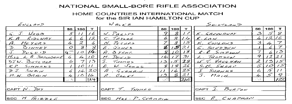 Andy top scored with six off, Malcolm dropped fourteen. England lost to Scotland by five points, reduced to two after challenges - they usually do loose by a far higher margin at the Scottish Meeting with the tables being turned at Bisley.