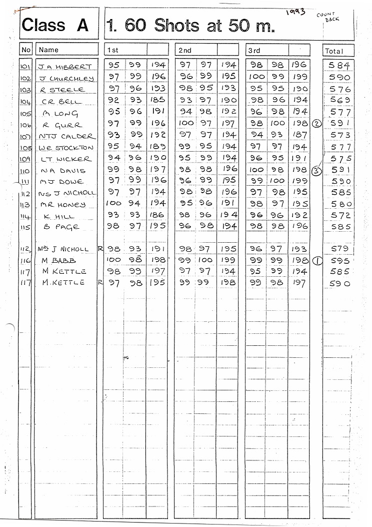 | 1. Aggregate Class A (Silver Cup) | 3rd | N A | Davis | Wimbledon Park | 591 | c/b |