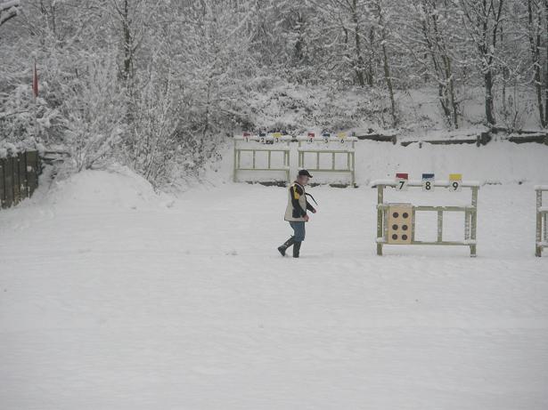 Half-way through February already and the days are lengthening even if it is still a bit cold. The picture shows the range in the snow. A number of our more hardy members kept shooting; very peaceful but you needed a good filter to reduce the light!